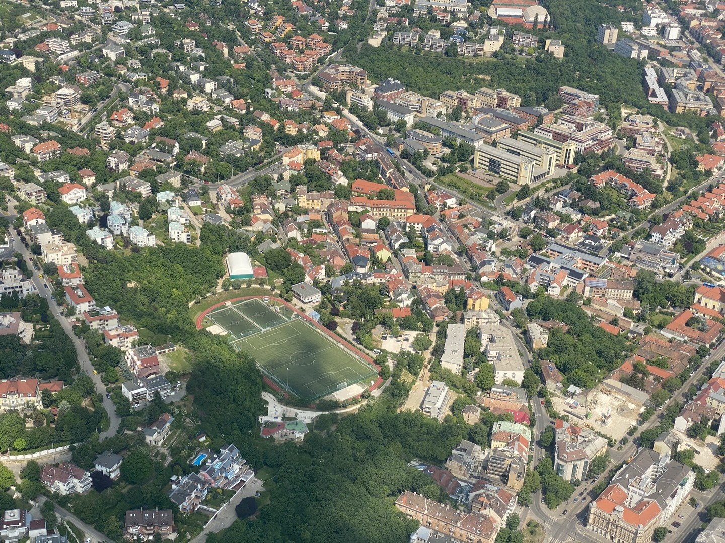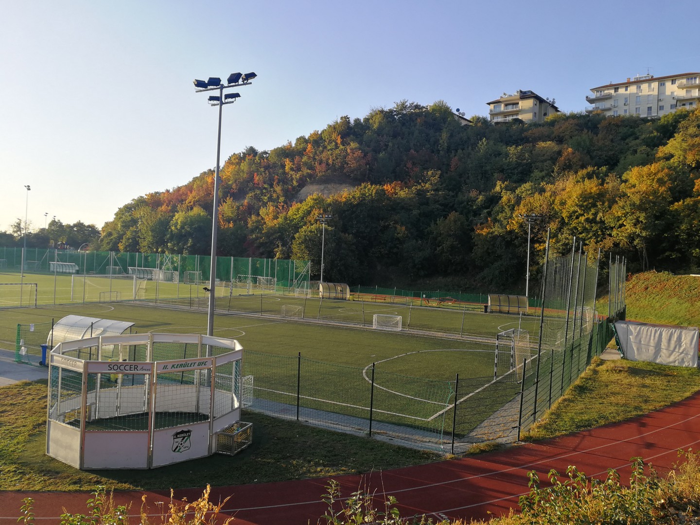 Our sports complex is located in Budapest's 2nd district, on a hillside with a panoramic view of the Danube, on an area of nearly 40,000 m2. The sports complex has artificial grass football pitches (of which 3 are covered and heated in winter), a running track, a streetball pitch, a fitness park and a playground. The modern clubhouse has eight changing rooms, a club room and a buffet waiting for athletes every day of the year. This is a place where the whole family can have fun.
